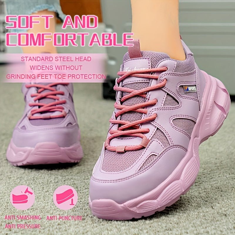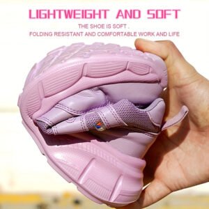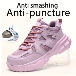 These women’s safety shoes are designed for the modern working woman who seeks safety and comfort. The breathable mesh upper provides long-lasting comfort, while the steel toe and puncture-resistant sole protect you from sharp objects and falling items. The slip-resistant rubber sole offers extra grip and stability. These shoes are perfect for work environments such as warehouses, construction sites, or for everyday use.